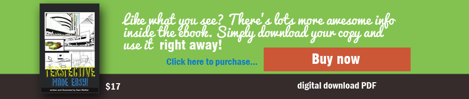 Now unlike the single point excercise, we now have 2 vanishing points, not 1. These are WAY off the page. Infact, 340mm each side of the vertical line. So begin by drawing a vertical line in the middle of the horizontal line. Add extra sheets of paper either side on the one you are drawing on. Then, using your ruler, measure 340mm to the left - mark a dot, and 330mm to the right - mark a dot